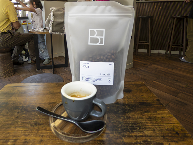 At the counter where customers place orders, the clerk told me that there were two “Espressos of the Moment” from which to select. Upon learning that the coffee from Brazil, called “Samba,” tasted like chocolate, I ordered a cup of that. At the same time, I purchased a 250g bag of the roasted beans.
